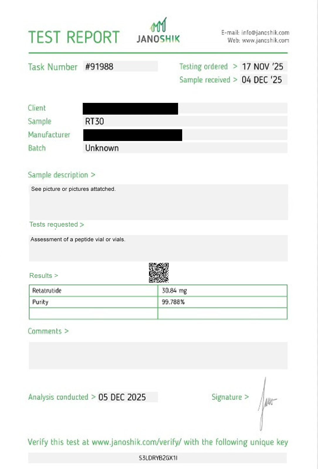 All COAs are issued by independent third-party laboratories. Results apply to the specific batch tested. For research use only.